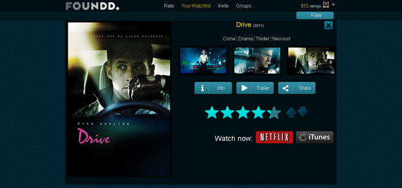 Podemos registrarnos vía Facebook, Twitter o correo electrónico. Luego de ingresar solo nuestros datos básicos nos llevará a un panel en el cual debemos, para comenzar, calificar diez películas. En el caso de no haberlas visto o no recordarlo, debemos agregar esa opción también. Una vez terminemos nos avisará que ya creó una lista para recomendarnos.