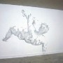 La obra fue realizada por Baptiste Debombourg, quién suele utilizar elementos de desperdicio en sus proyectos y tiene una marcada obsesión con las enormes cantidades de cosas. En este caso es un trabajo que le llevó 75 horas de realización y la utilización de 35.000 grapas. Como verán, el resultado es impecable. Y si bien da datos sobre su inspiración en el Manierismo, y está claro en su impronta, considero que va un poco más allá. Muta un objeto frio, y rígido, como lo es una grapa, en un mural dinámico y con gran tensión.