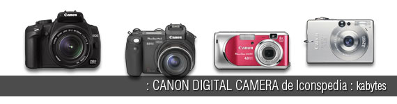 Contiene cuarenta y siete iconos de modelos de cámaras digitales Canon, está disponible para descargar gratuitamente tanto para Windows como para Mac en formato .ico, para descargarlos en formato .png se realiza de forma individual. Se incluyen íconos de hasta 128×128 px.