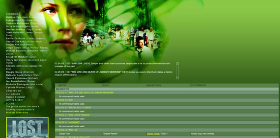 También de los mismos autores, podrán acceder a la lista de música de Lost, que bien sabemos tiene miles de seguidores (me incluyo) en todo el mundo. En ambos sitios podrán encontrar algunas de las pistas para escuchar directamente.
