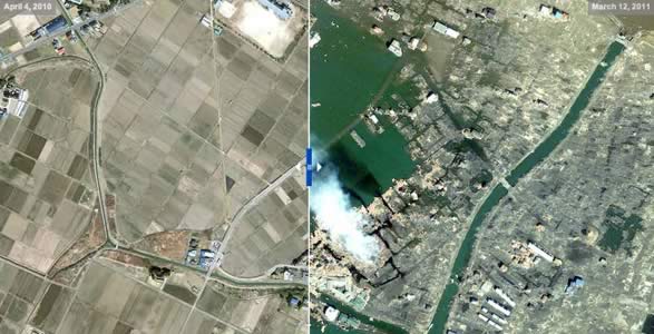 Hoy mientras observaba unas fotografías de Japón en el NY Times del antes y después del Tsunami, me llamo mucho la atención el efecto utilizado para mostrar en un mismo espacio dos imágenes.