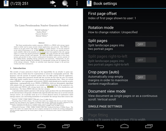 Entre los formatos permitidos figuran PDF, DjVu, XPS, FB2 y CBZ. Para mayor comodidad al leer, desde el menú de opciones podremos editar su aspecto. Y lograr así que se adapte mejor a nuestras costumbres y gustos personales.