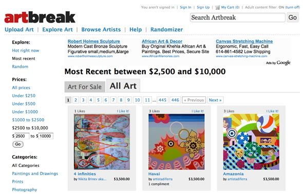 Si eres un artista y estas buscando una forma simple para comercializar tus obras de arte probablemente Art Break sea de tu interés, porque te permite en muy pocos pasos poner a la venta tus trabajos en un mercado de obras originales.